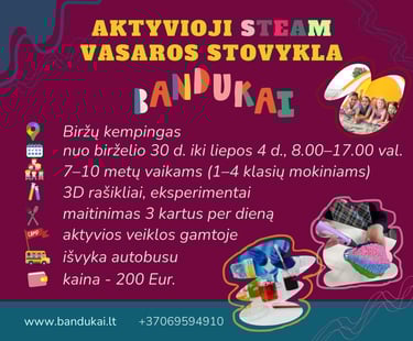 AKTYVIOJI STEAM VASAROS STOVYKLA – PRISIJUNKITE PRIE NUOTYKIO!